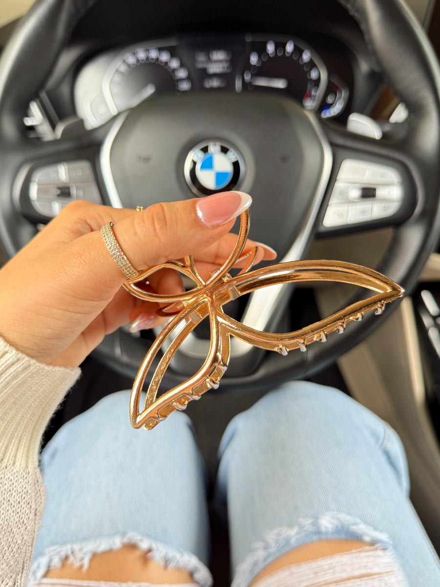 Nuestro Caiman Ariel destaca por su delicada forma de mariposa, elaborada en material metálico en color dorado que añade luz y sofisticación a cualquier peinado. Su diseño combina firmeza y estilo, perfecto para sujetar tu cabello con un toque elegante y femenino. Ideal para realzar tus looks.