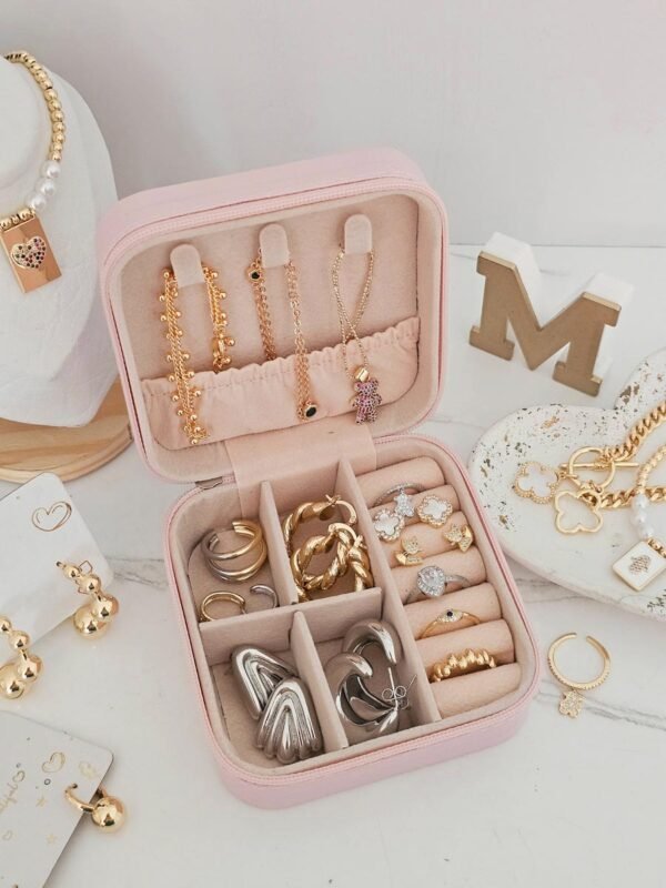 Este joyero es el compañero perfecto para llevar tus accesorios a cualquier lado gracias a su tamaño compacto. Su diseño con cierre asegura una mayor protección y seguridad para tus joyas, manteniéndolas organizadas y bien guardadas. Ideal para viajes o para tener tus piezas favoritas siempre a mano de manera práctica y elegante.