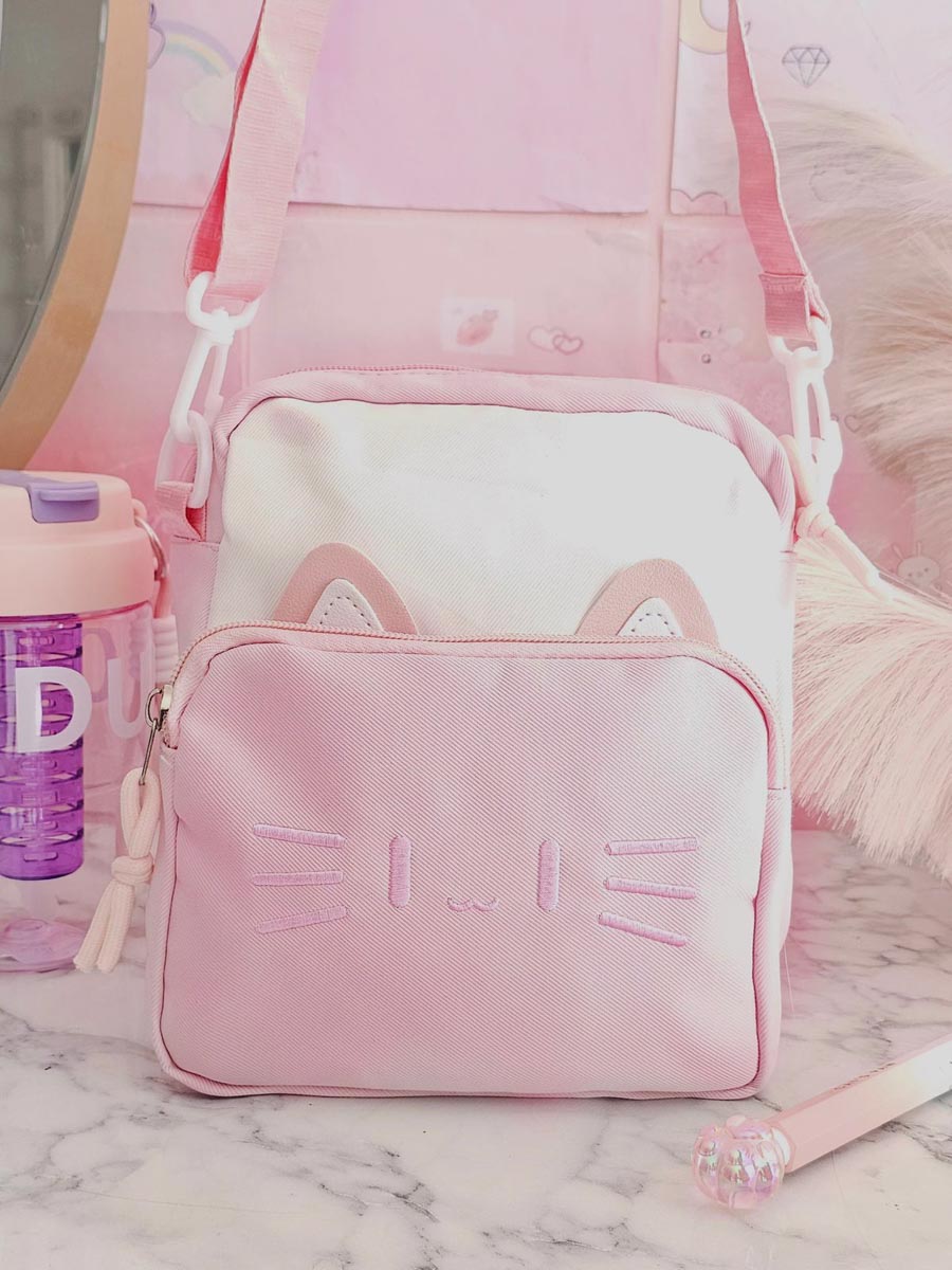 Tierno, práctico y lleno de estilo 🐱 Este encantador bolso de gatito es el compañero perfecto para las pequeñas aventureras. Con correa ajustable, dos bolsillos funcionales y un diseño adorable, será su favorito para salir. Mide 22 cm de alto por 17 cm de ancho, ¡ideal para llevar sus tesoros a todas partes!