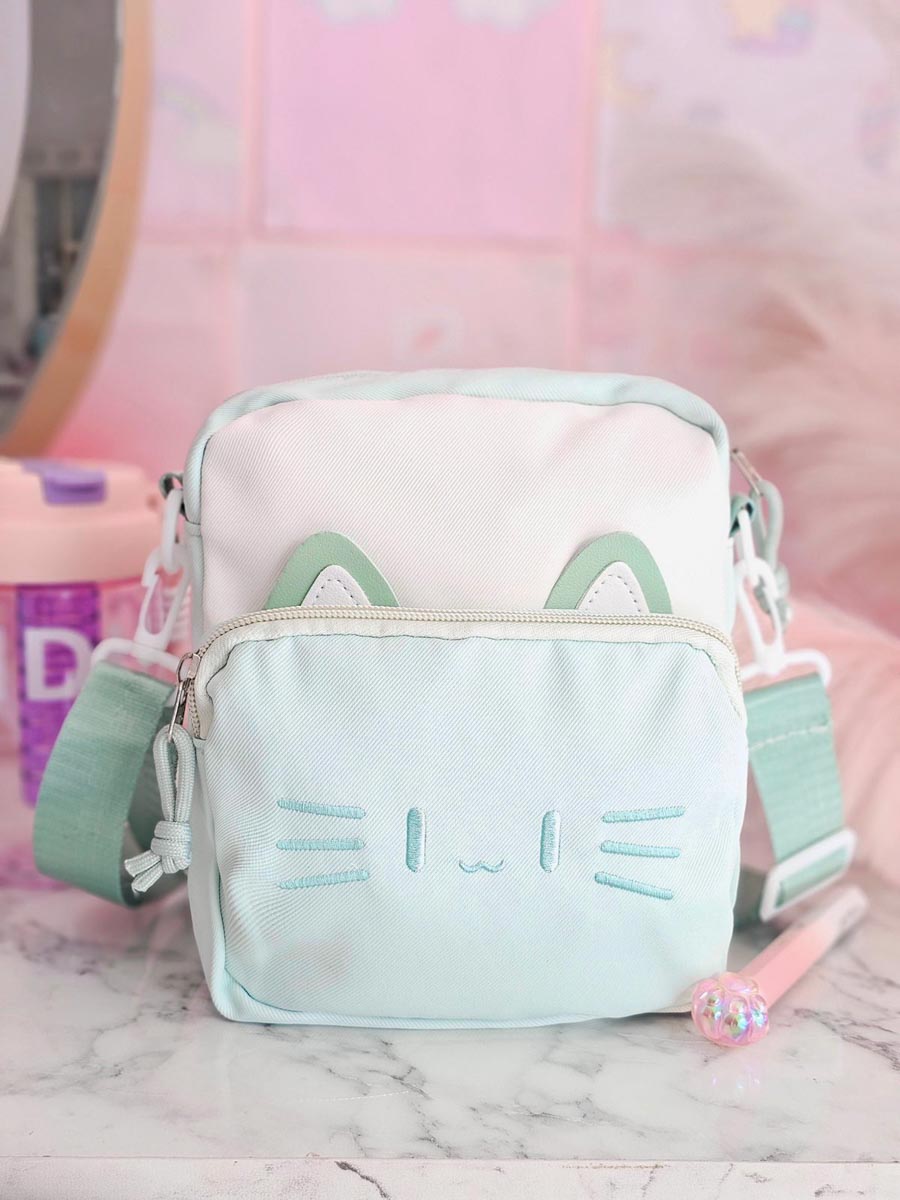 Tierno, práctico y lleno de estilo 🐱 Este encantador bolso de gatito es el compañero perfecto para las pequeñas aventureras. Con correa ajustable, dos bolsillos funcionales y un diseño adorable, será su favorito para salir. Mide 22 cm de alto por 17 cm de ancho, ¡ideal para llevar sus tesoros a todas partes!