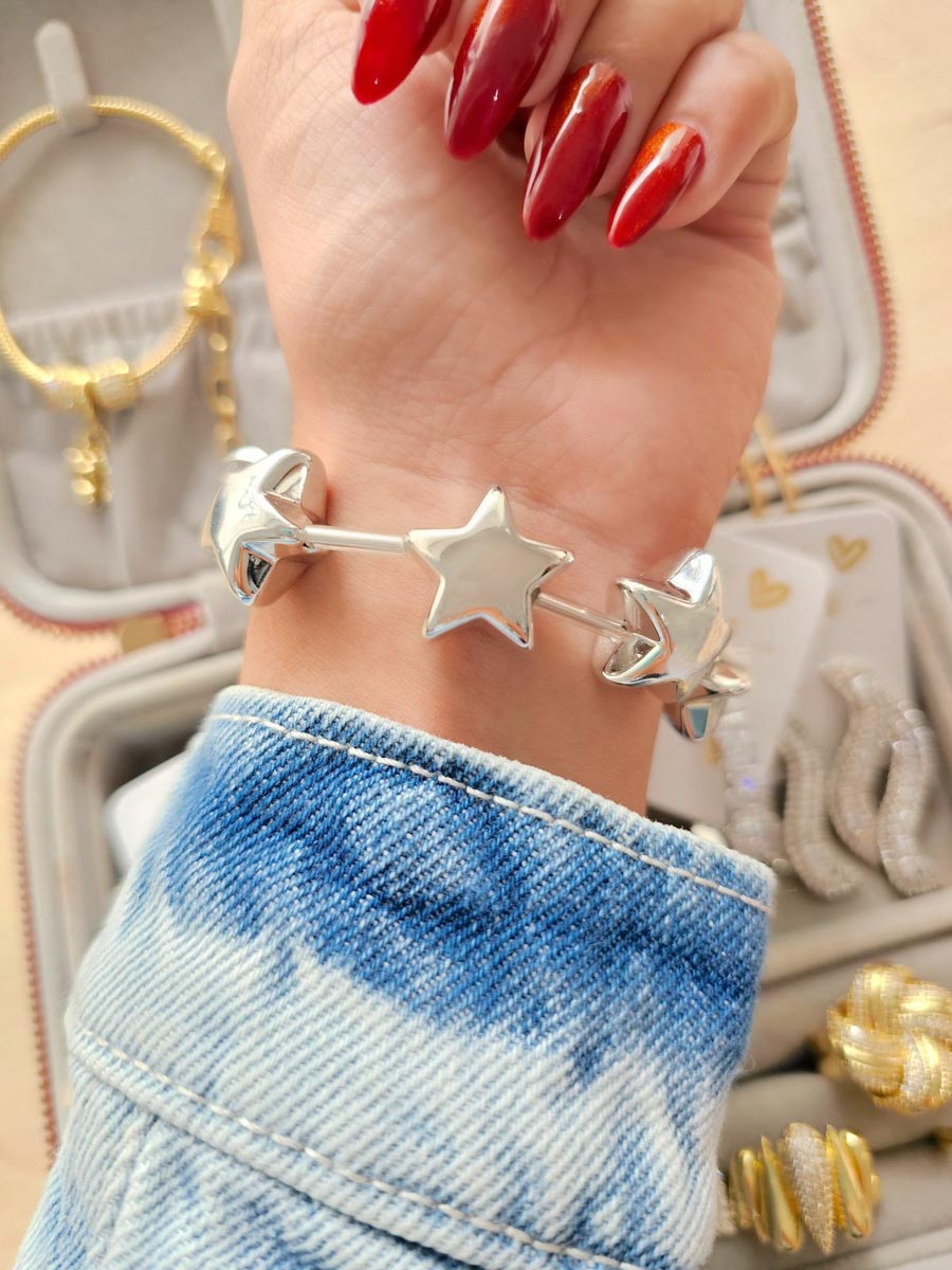 Pulsera Linea Estrellas Plateado