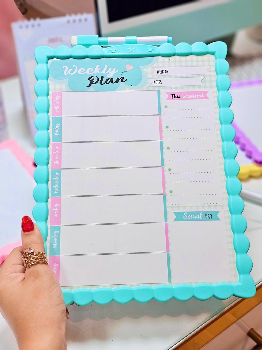 ¡Organiza tu vida con estilo! 💖 Este tablero planificador es perfecto para anotar tus metas, recordatorios, tareas y sueños. Con un diseño moderno y colores vibrantes, convierte tu espacio en un rincón lleno de inspiración. Ideal para escritorios, habitaciones o incluso tu oficina. Viene con espacio para notas diarias, semanales o mensuales, y es reutilizable: solo escribe, borra y vuelve a empezar.
