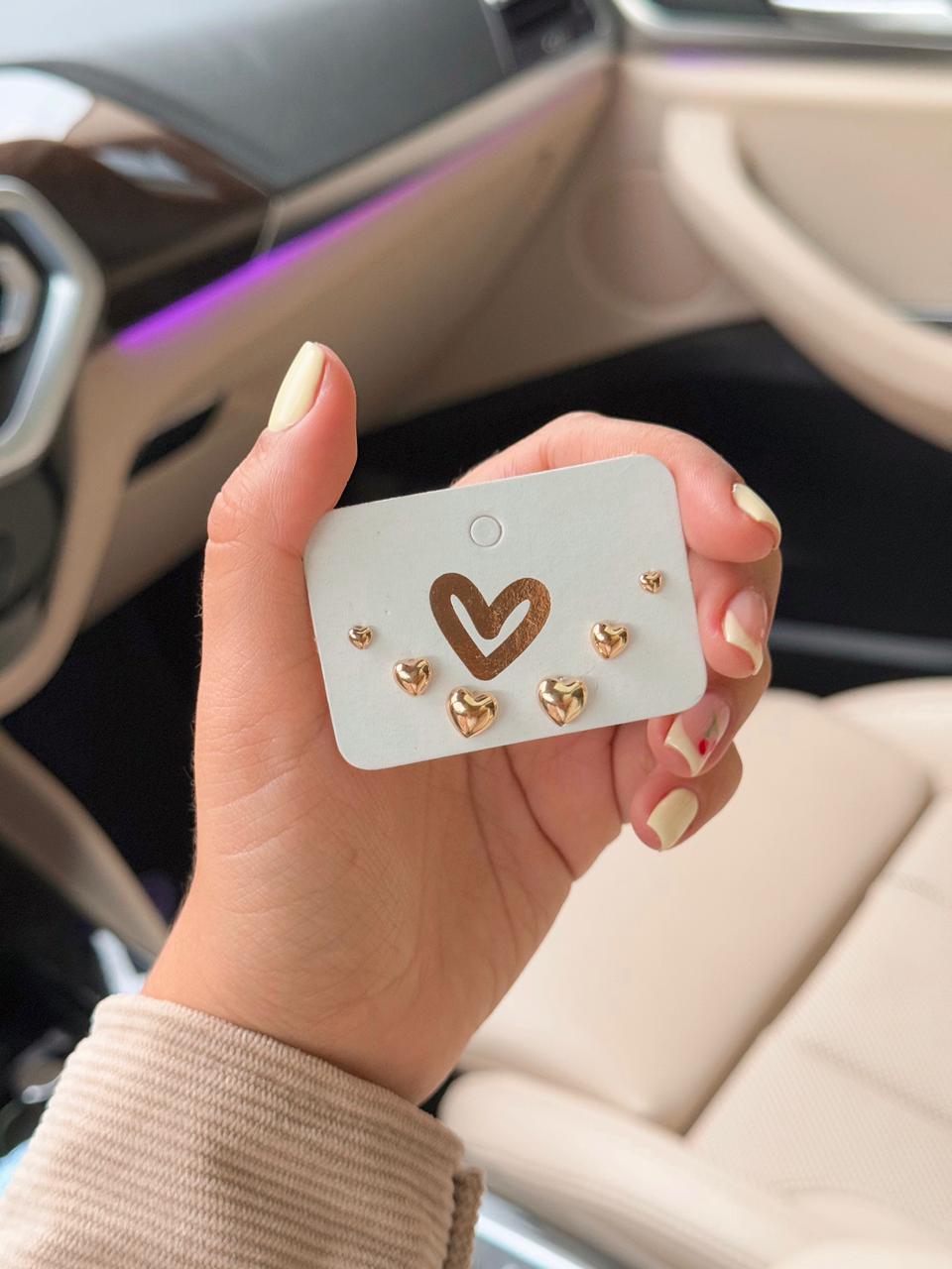 Trío Corazones 💖 — tres topos dorados con delicado diseño en forma de corazón. Su estilo tierno y brillante los convierte en el complemento ideal para resaltar tu lado romántico y añadir un toque de amor a cada look. ✨